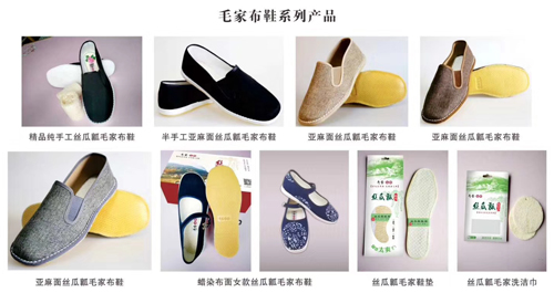 毛家布鞋在傳承毛家手工布鞋工藝的基礎(chǔ)上,采用天然絲瓜瓤、優(yōu)質(zhì)亞麻面料、優(yōu)質(zhì)棉布作為原料,結(jié)合現(xiàn)代制鞋技術(shù),研發(fā)生產(chǎn)了天然絲瓜瓤保健布鞋。天然絲瓜瓤,是絲瓜成熟后自然風(fēng)干所得的網(wǎng)狀體,富有彈性。毛家布鞋技藝先進(jìn),具有透氣、濾汗、除臭、抗菌、舒筋、通絡(luò)、護(hù)膚等特點(diǎn),穿著舒適、輕便,可有效預(yù)防和改善腳汗、腳臭、腳氣、腳裂等腳部頑疾,對腳部具有全面的保健護(hù)理作用。