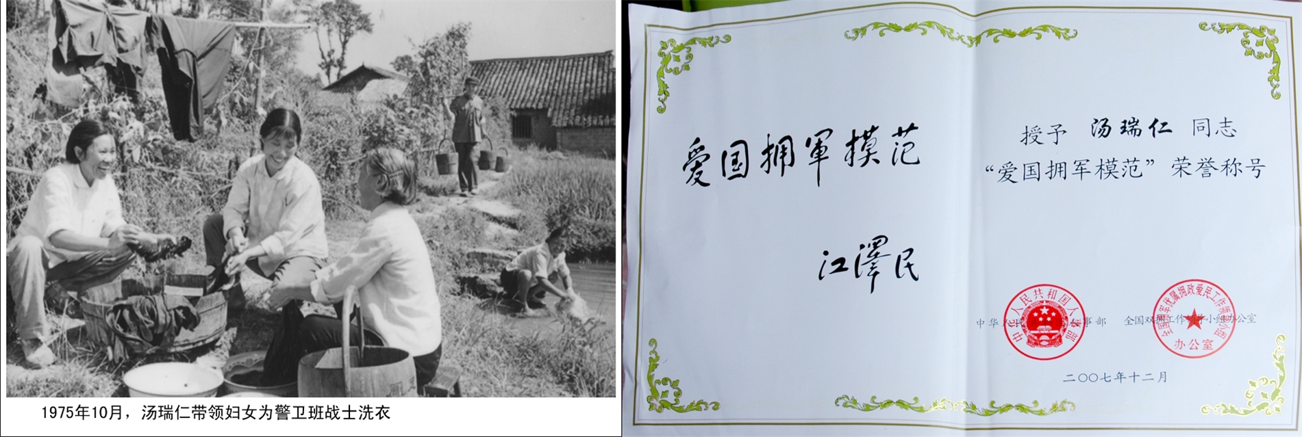 悠悠擁軍情,拳拳慈母心。昔日,湯瑞仁是個(gè)“模范軍屬”,曾和毛主席合過影,是一個(gè)“幸?!钡娜?;如今,湯瑞仁是個(gè)“愛國擁軍模范”,成為享譽(yù)全國的女能人,這塊榮譽(yù)的背后融入了全家三代整整70多年的心血。