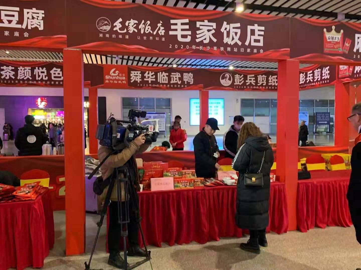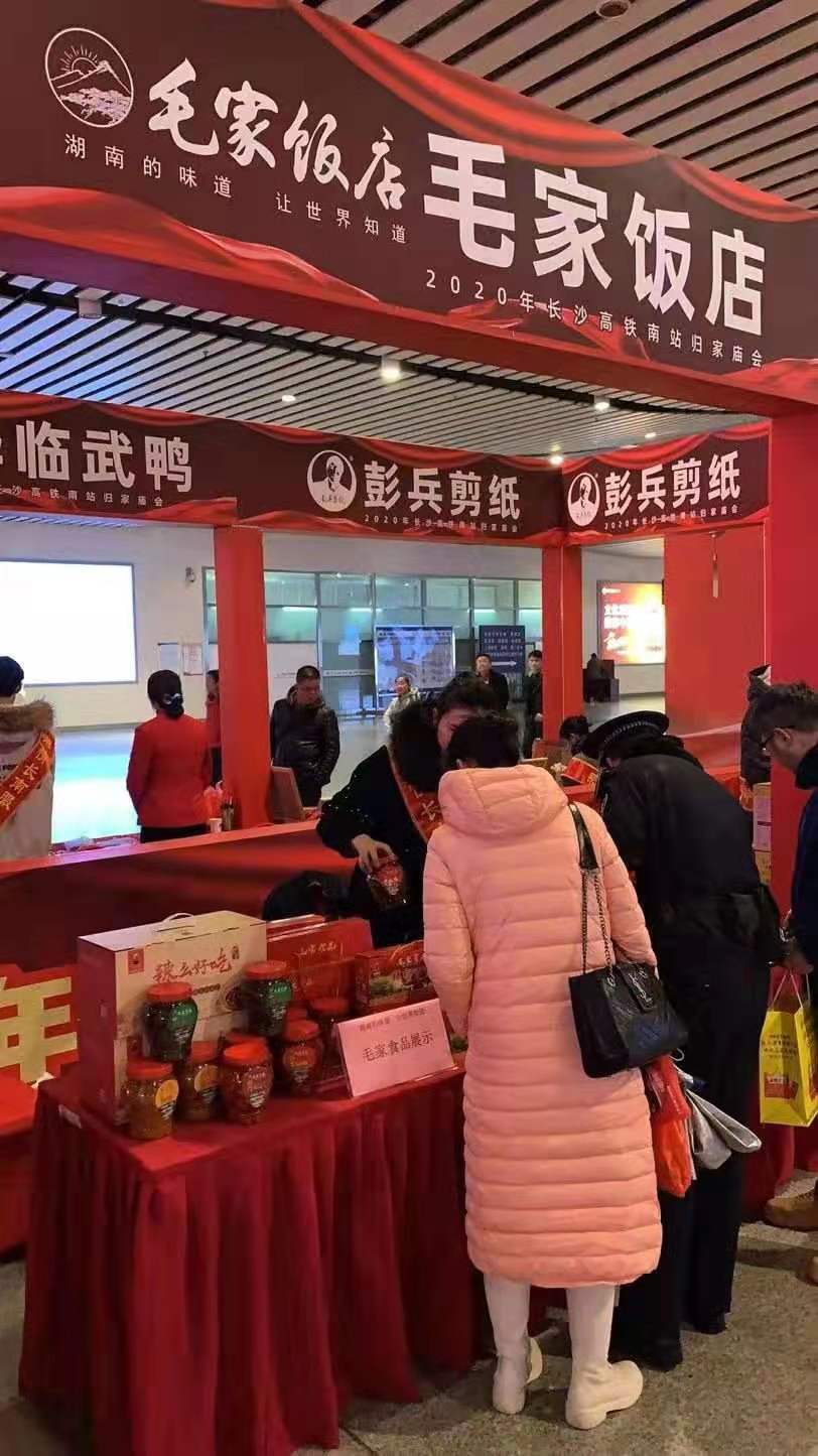 春節(jié)的腳步越來(lái)越近,親人回鄉(xiāng)的路程也越來(lái)越短,過(guò)年團(tuán)聚的氛圍也越來(lái)越濃烈。為了讓更多歸家的旅客提前感受到家鄉(xiāng)的溫暖和親切,長(zhǎng)沙高鐵南站在1月15日舉行了一場(chǎng)以“尋味湖南”為主題的“2020歸家廟會(huì)”,為回湘游子備上多款年貨。高鐵站的多家商鋪參加了此次廟會(huì),其中就包括了毛家飯店長(zhǎng)沙高鐵店。