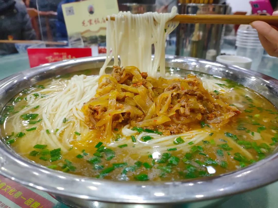 一碗碗熱騰騰、香噴噴的面條端上餐桌,面條白凈細膩,配上新鮮熬制的高湯,餐桌上擺放的是貢菜脆椒、火焙魚、花生米、涼拌木耳等配菜,又一次遠道而來的人們知道,還是那碗熟悉的味道,充滿了淳厚、質(zhì)樸的人情味。