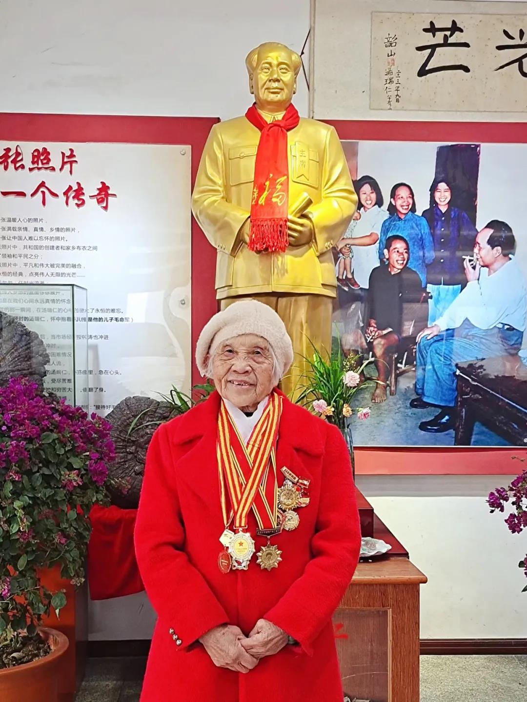 92歲的湯瑞仁奶奶是毛家飯店的創(chuàng)始人,今天起了個大早,精神狀態(tài)極好,胸口掛滿了各種獎?wù)潞酮勁?,“我是毛主席的鄰居,不能給他丟人,要接待好主席的客人,讓大家吃得放心、安心、開心。”湯瑞仁老奶奶親切地招呼著每一位來吃福壽面的人們,“沒有毛主席就沒有新中國,更沒有今天的毛家飯店。傳承紅色基因,將偉人精神傳遞給后輩,不忘初心,牢記使命!”