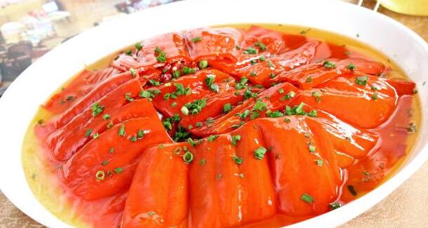 這份看起來(lái)滿眼彩色的辣椒下埋藏著一份魚(yú)頭! 這款彩椒脆甜無(wú)比,但吃的辦法是把辣椒深深的浸潤(rùn)在湯汁里,浸潤(rùn)后脆感不減,咸味豐足!此菜是很多人的!