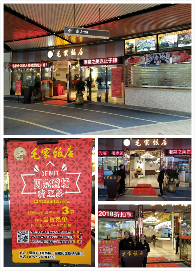 廣東佛山樂從東平新城毛家飯店,位于佛山順德東平新城世紀(jì)蓮體育中心旁(星耀101商場(chǎng)負(fù)一樓),廣佛地鐵線世紀(jì)蓮站上,離佛山市中心1.5公里,交通便利,周圍商圈配套齊全。